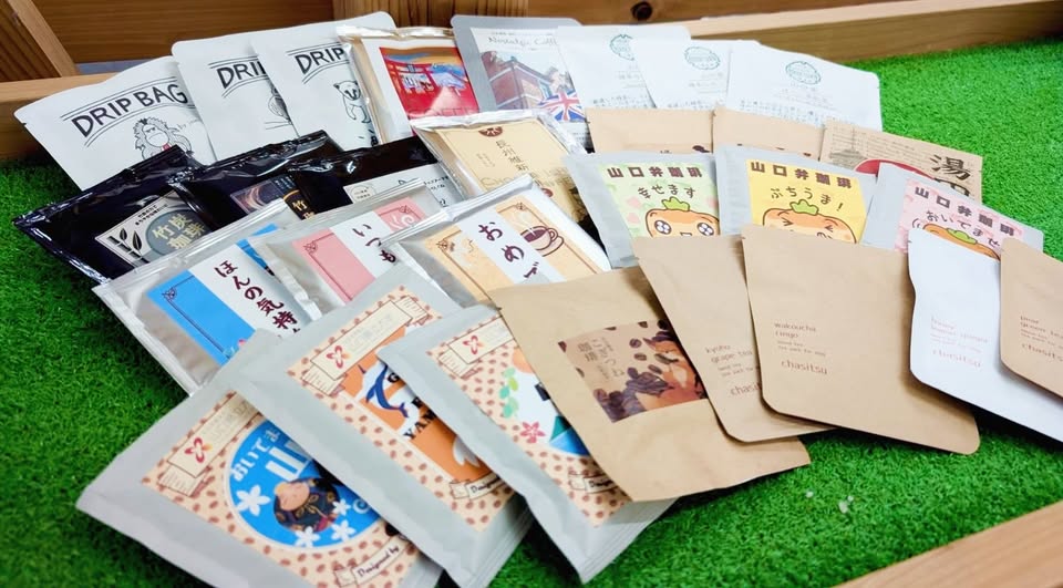 山口県各市の珈琲・紅茶・お茶などを1包タイプで自由に組み合わせて購入出来ますプレゼント用の厚手の紙袋もご用意いただいているので、お土産にもピッタリ🎁